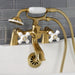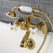 Vintage opulence finds itself within this deck-mount clawfoot tub faucet. As the perfect complement to your tub, this will complete your refined bathroom decorum with the help of its premium, glistening brushed brass finish and telephone style hand shower. The solid brass construction also makes for a heavy, quality made product. Hand shower with porcelain handle and 59-inch hose.