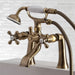 Kingston KS268AB Three-Handle 2-Hole Deck-Mount Clawfoot Tub Faucet with Hand Shower, Antique Brass