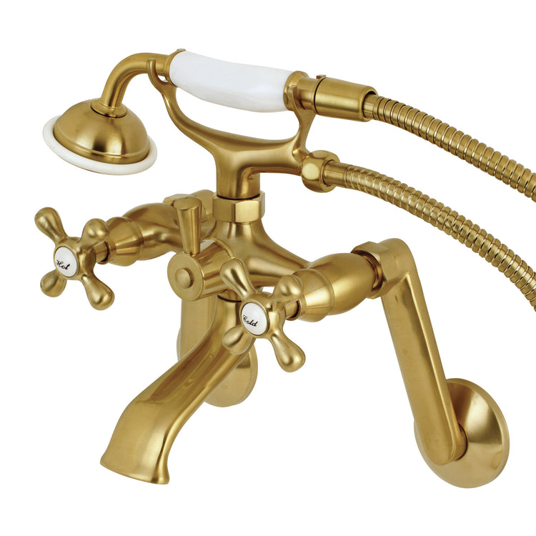 Kingston KS269SB Three-Handle 2-Hole Tub Wall Mount Clawfoot Tub Faucet with Hand Shower, Brushed Brass