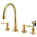 Kingston Tulare KS2792NLBS - Governor Double-Handle 4-Hole Widespread Kitchen Faucet with Brass Sprayer, Polished Brass