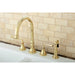 Kingston Tulare KS2792ZLBS - Silver Sage Double-Handle 4-Hole Widespread Kitchen Faucet with Brass Sprayer, Polished Brass