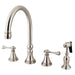 Kingston Tulare KS2798BLBS - Governor Double-Handle 4-Hole Widespread Kitchen Faucet with Brass Sprayer, Brushed Nickel