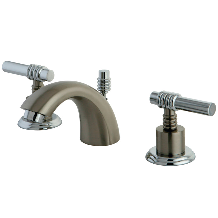 The exquisite design of this faucet tastefully flatters the elegant architecture of traditional homes with its fine detailing. Emulating the widespread look, mini-widespread bathroom faucets are for those that love detailed facets and clean lines. These compact faucets provide all of the design elements of a quality faucet without the need for a deck plate in 3-hole sinks. The Kingston Brass mini-widespread bathroom faucet and its featured sturdy brass construction and premium brushed nickel/polished chrome finish are guaranteed to glamorize your home's traditional ensemble for years to come. A matching finish drain is also included.