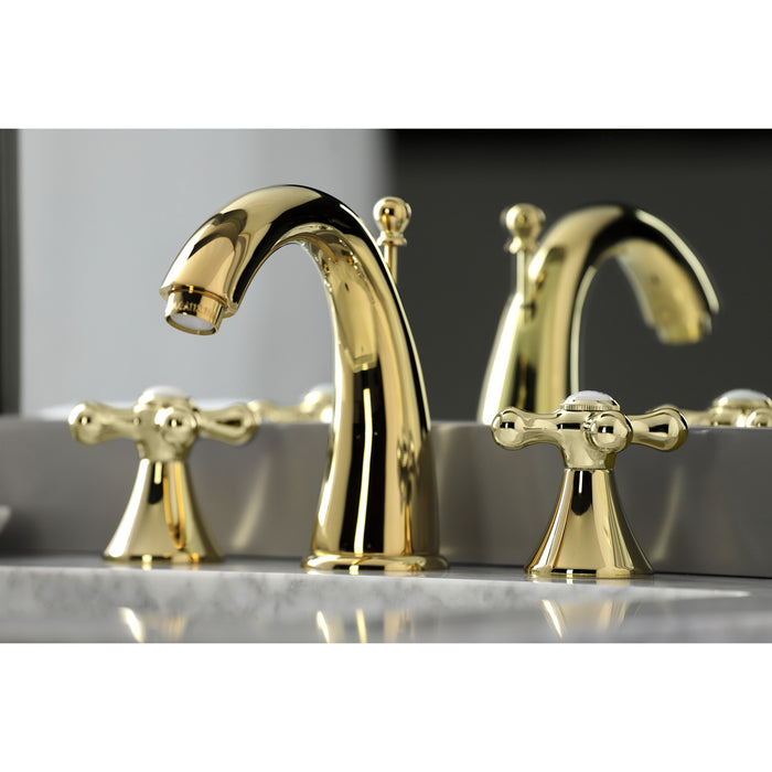 Kingston Tulare KS2972AX - Naples Two-Handle 3-Hole Deck Mount Widespread Bathroom Faucet with Brass Pop-Up, Polished Brass
