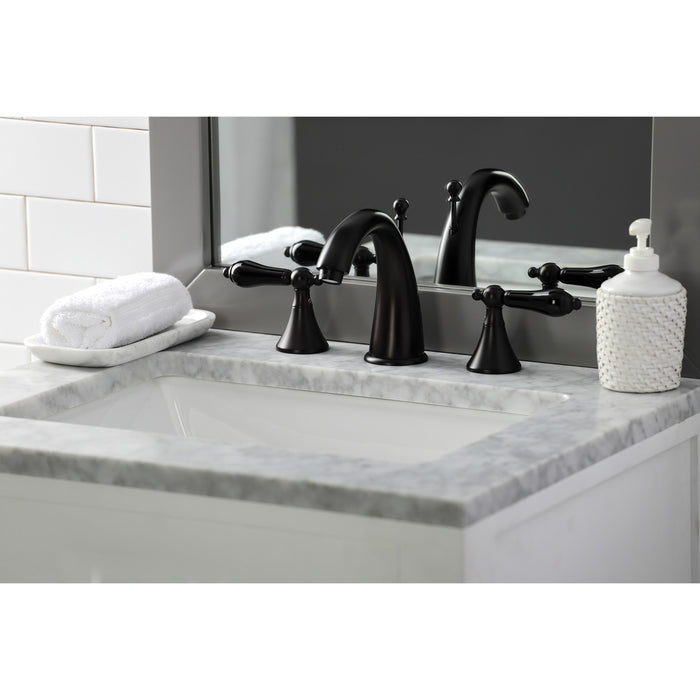 Kingston Tulare KS2975PKL - Duchess Two-Handle 3-Hole Deck Mount Widespread Bathroom Faucet with Brass Pop-Up, Oil Rubbed Bronze