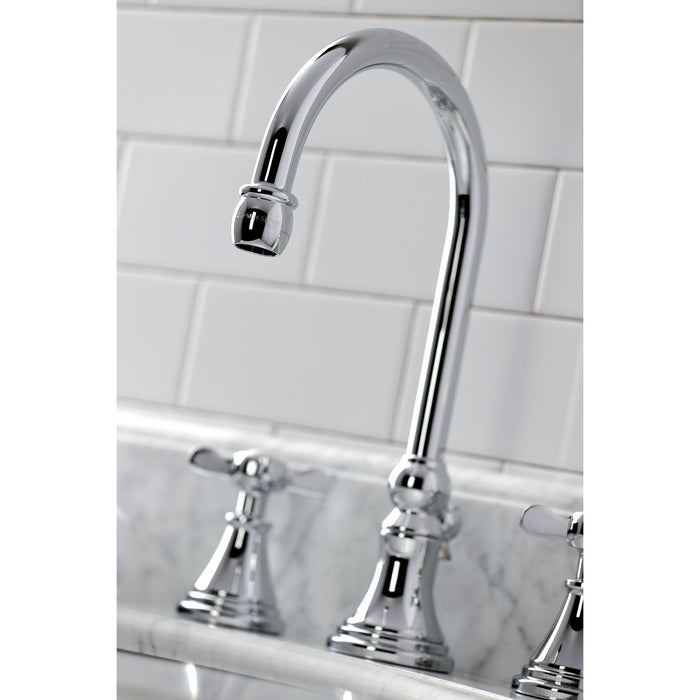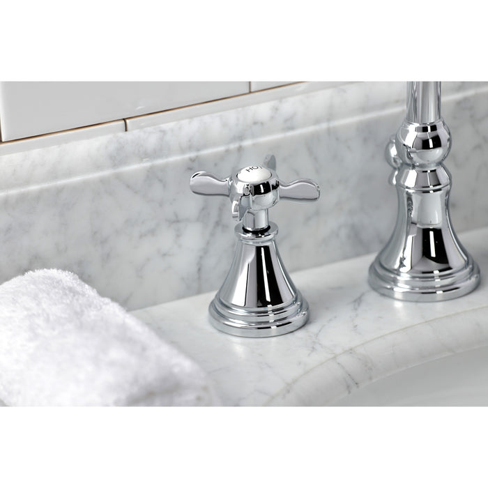 Kingston Tulare KS2981BEX - Essex Two-Handle 3-Hole Deck Mount Widespread Bathroom Faucet with Brass Pop-Up, Polished Chrome