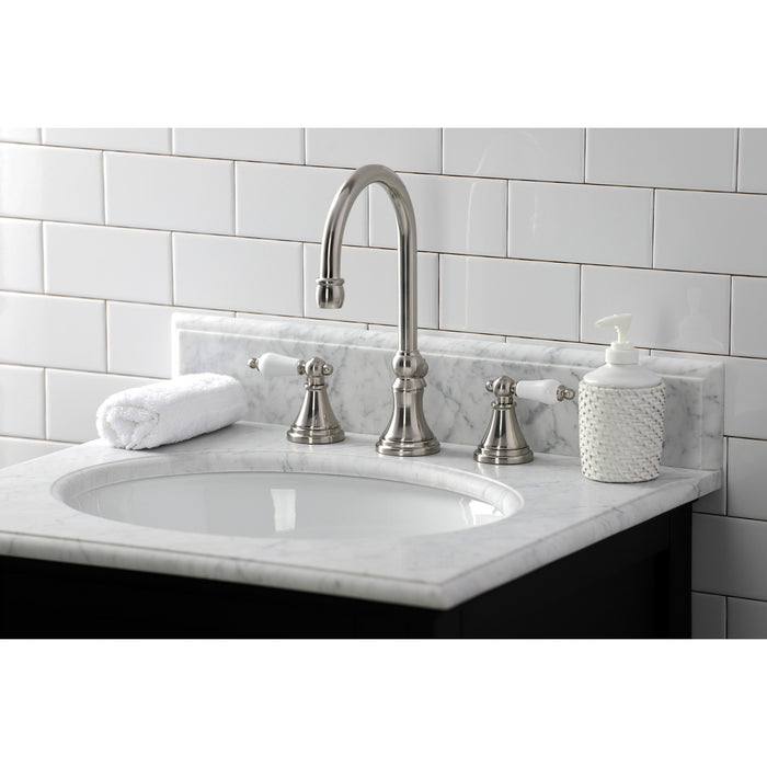 Kingston Tulare KS2988PL - Governor Two-Handle 3-Hole Deck Mount Widespread Bathroom Faucet with Brass Pop-Up, Brushed Nickel