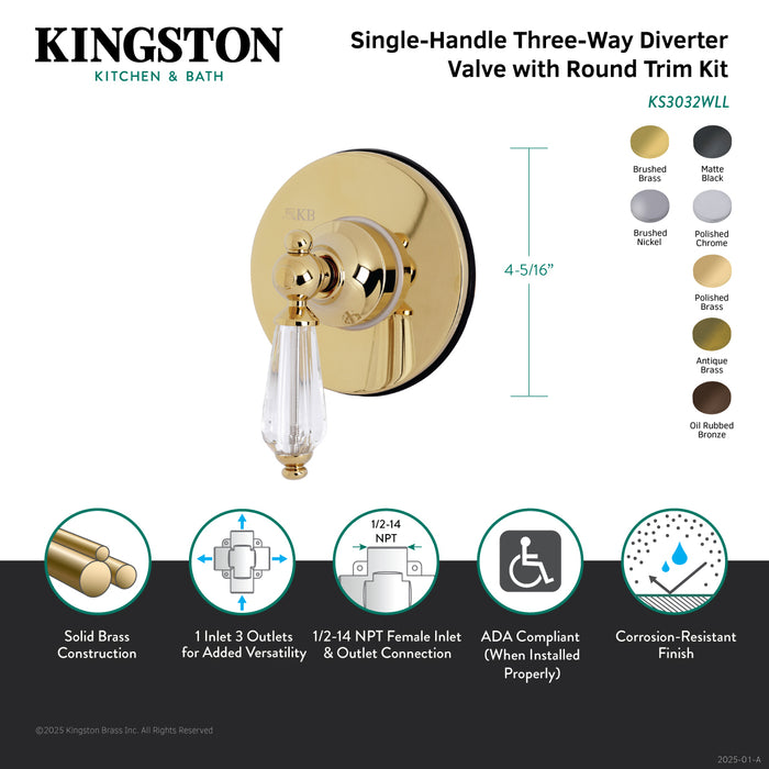 Kingston Heirloom KS3035WLL - Willshire Single-Handle Three-Way Diverter Valve with Round Trim Kit, Oil Rubbed Bronze