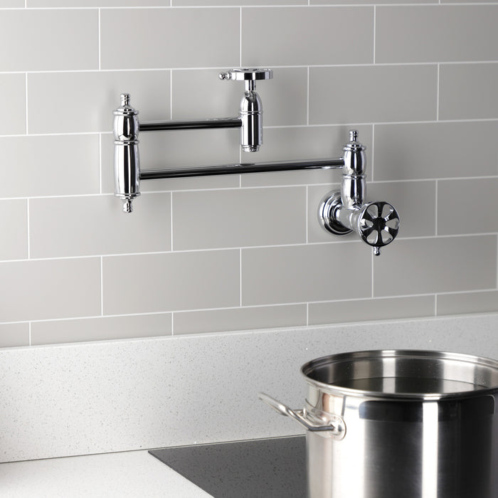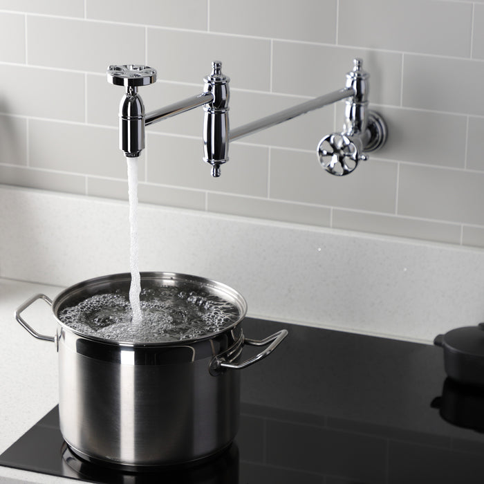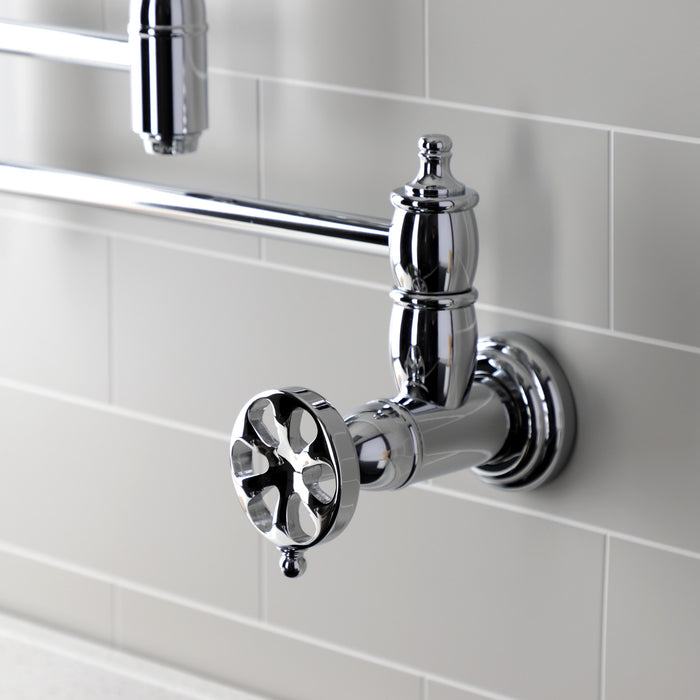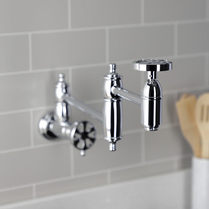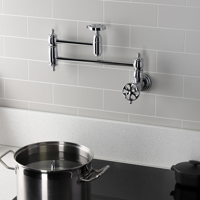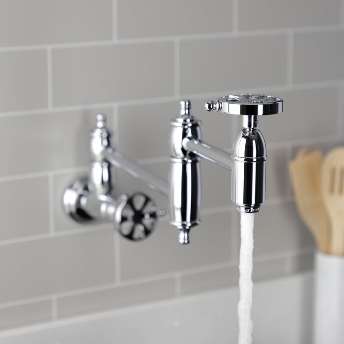 Kingston Tulare KS3101RX - Belknap Two-Handle 1-Hole Wall Mount Pot Filler Faucet, Polished Chrome
