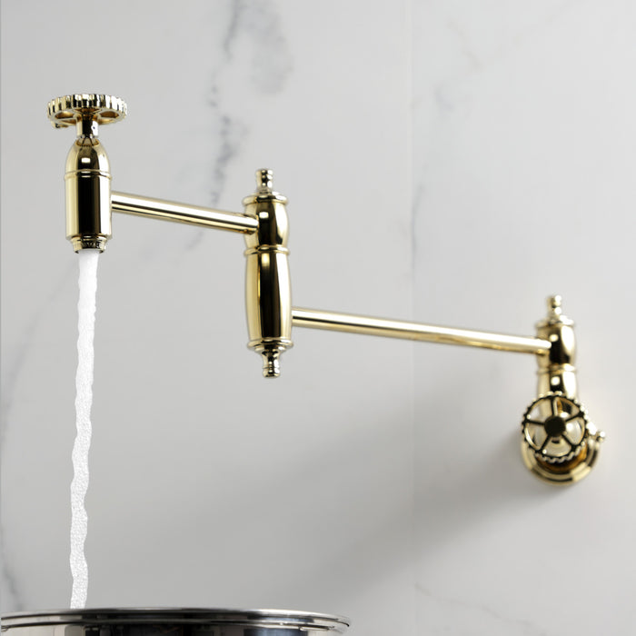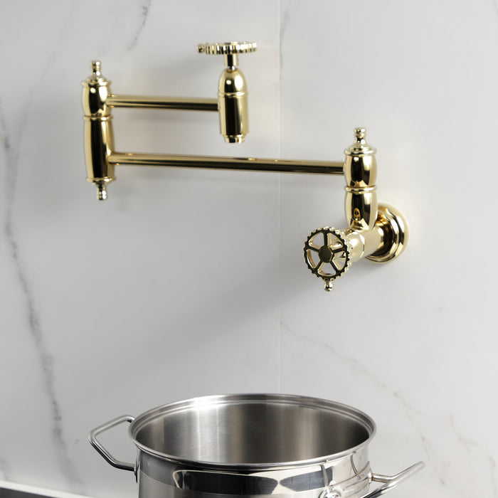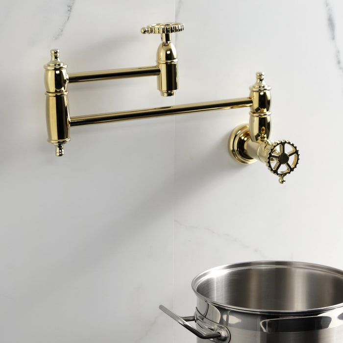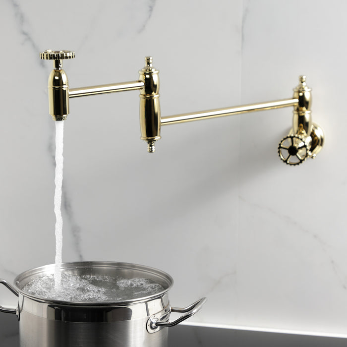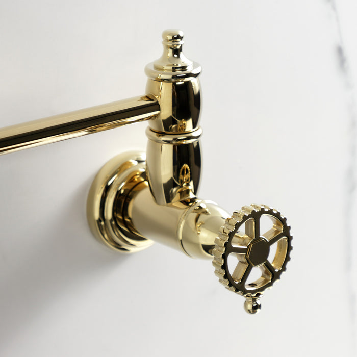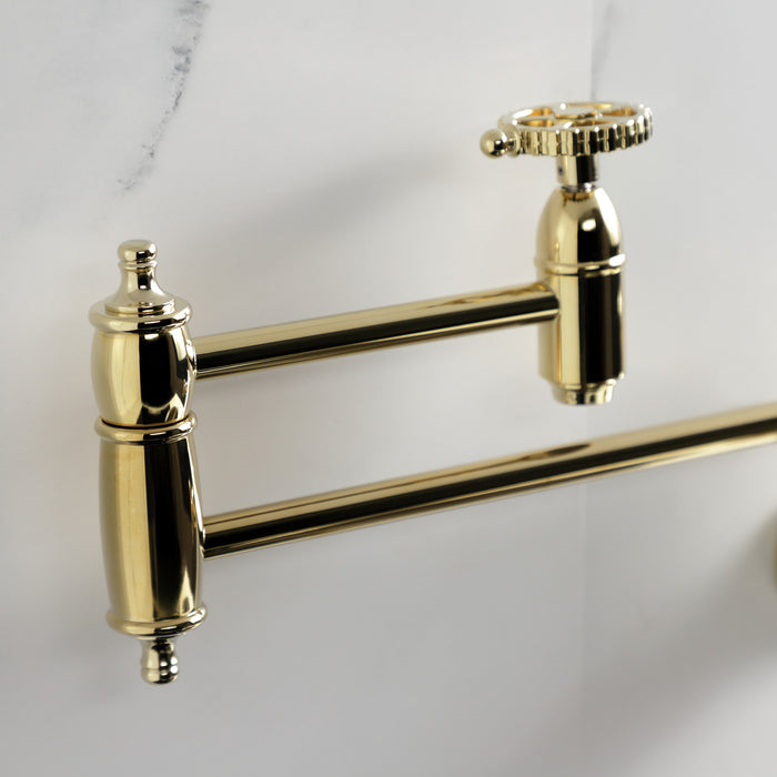 Kingston Tulare KS3102CG - Fuller Two-Handle 1-Hole Wall Mount Pot Filler Faucet, Polished Brass