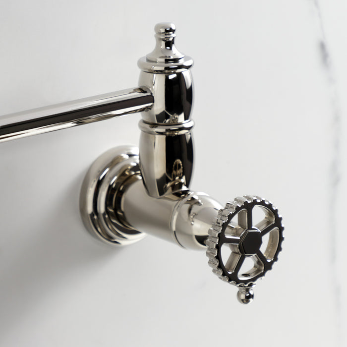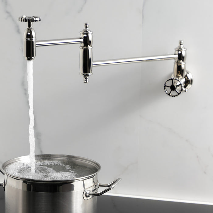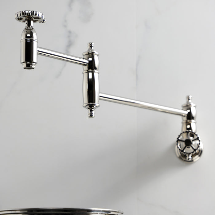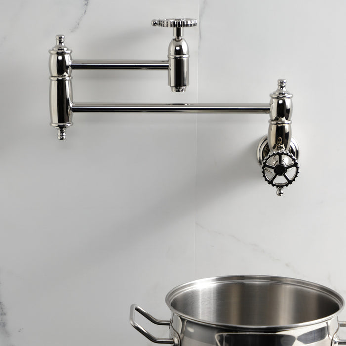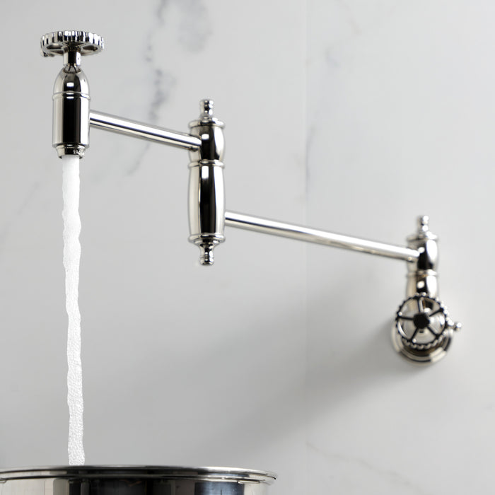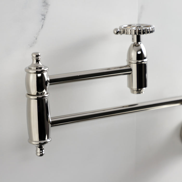 Kingston Tulare KS3106CG - Fuller Two-Handle 1-Hole Wall Mount Pot Filler Faucet, Polished Nickel