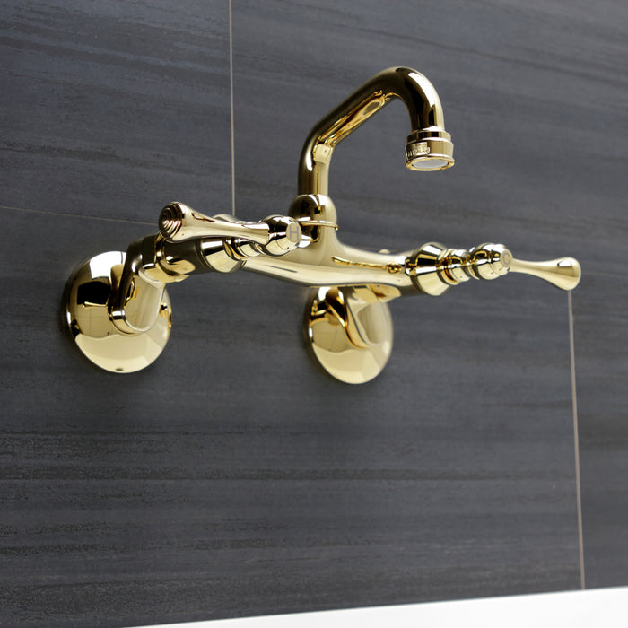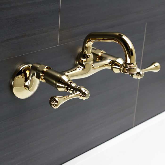 Kingston Tulare KS312PB - Kingston Two-Handle 2-Hole Wall Mount Bar Faucet, Polished Brass