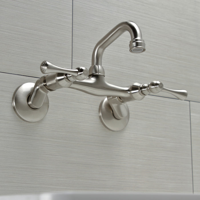 Kingston Tulare KS312SN - Kingston Two-Handle 2-Hole Wall Mount Bar Faucet, Brushed Nickel