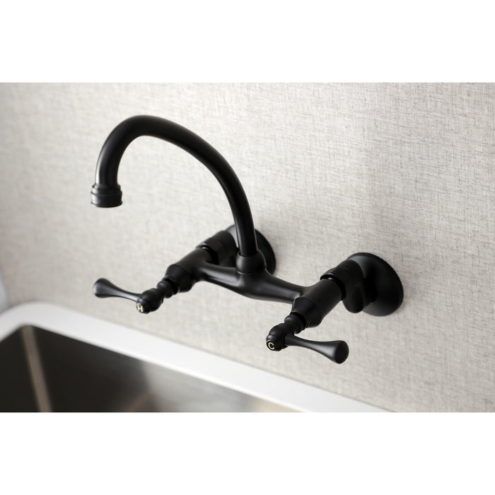 Kingston Tulare KS314MB - Kingston Two-Handle 2-Hole Wall Mount Bridge Kitchen Faucet, Matte Black