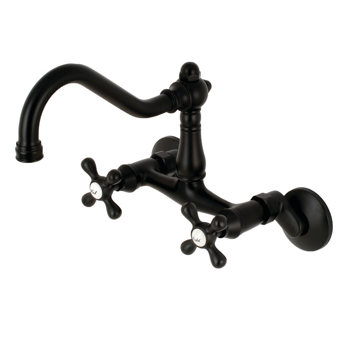 Kingston Heirloom KS3220AX - Vintage Two-Handle 2-Hole Wall Mount Bridge Kitchen Faucet, Matte Black