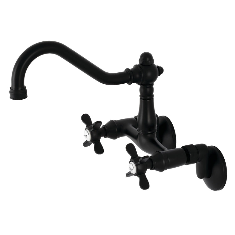 Kingston Heirloom KS3220BEX - Essex Two-Handle 2-Hole Wall Mount Bridge Kitchen Faucet, Matte Black