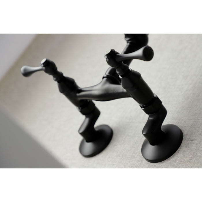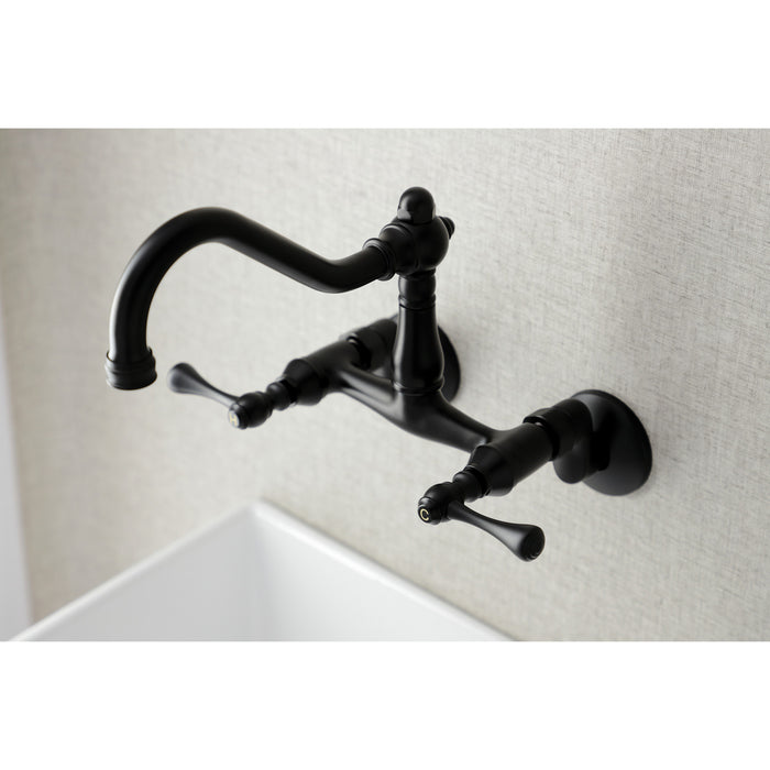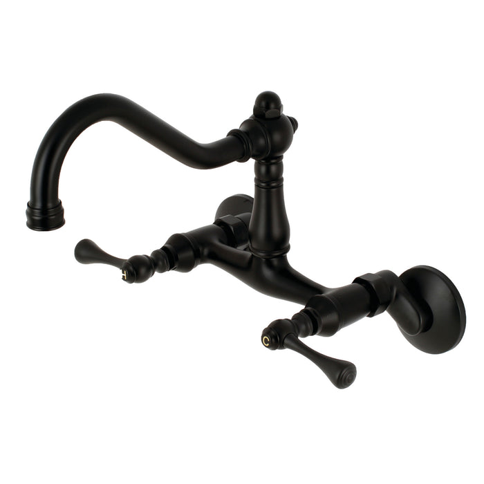 Kingston Heirloom KS3220BL - Vintage Two-Handle 2-Hole Wall Mount Bridge Kitchen Faucet, Matte Black