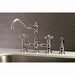 Kingston Heirloom KS3276AXBS - Restoration Two-Handle 4-Hole Deck Mount Bridge Kitchen Faucet with Brass Sprayer, Polished Nickel