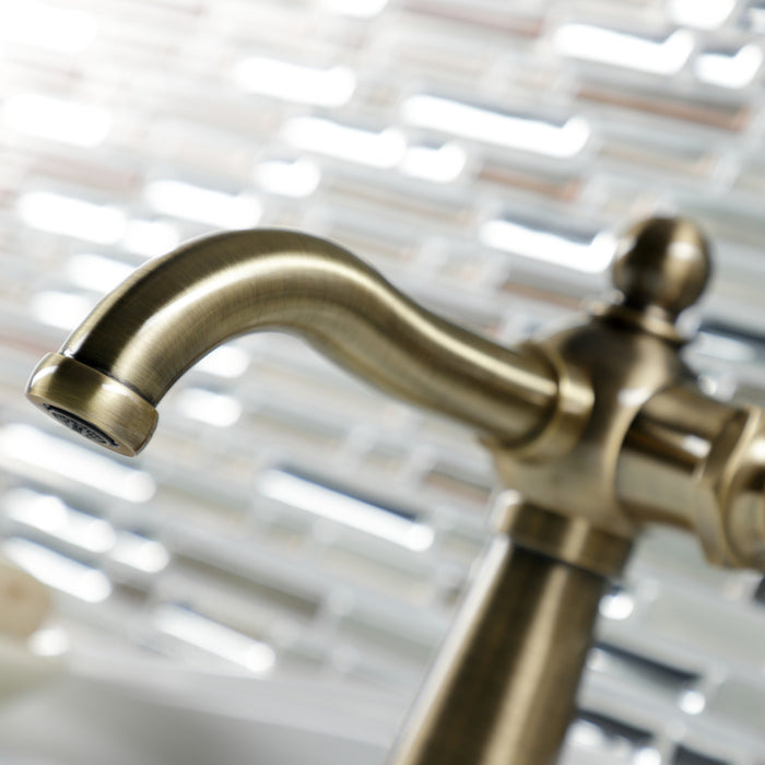 Kingston Tulare KS3543KL - Knight One-Handle 1-Hole Bathroom Faucet with Push Pop-Up Drain, Antique Brass