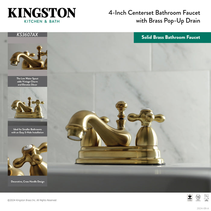 Kingston Heirloom KS3600AX - Restoration Double-Handle 3-Hole Deck Mount 4-Inch Centerset Bathroom Faucet with Brass Pop-Up, Matte Black