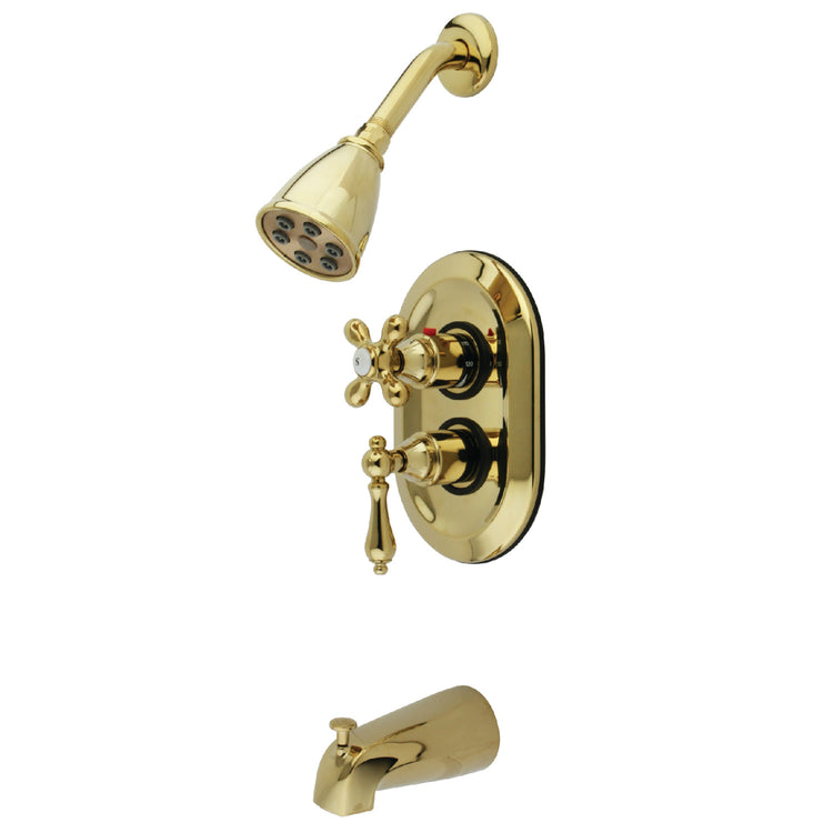 Kingston Restoration KS36320AL Double-Handle 3-Hole Thermostatic Tub and Shower Faucet with Plunger Diverter, Polished Brass