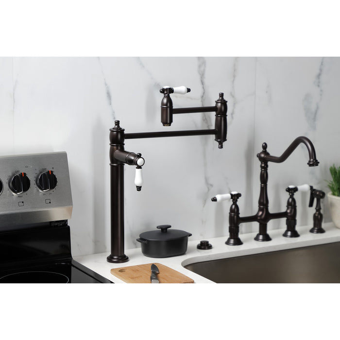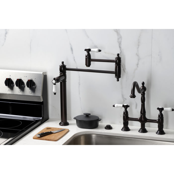 Kingston Heirloom KS3705BPL - Bel-Air Two-Handle 1-Hole Deck Mount Pot Filler Faucet, Oil Rubbed Bronze