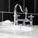 Kingston Heirloom KS3911AX-Restoration Two-Handle 3-Hole Deck Mount Bridge Bathroom Faucet with Brass Pop-Up, Polished Chrome
