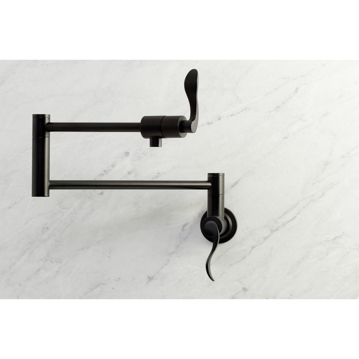 Kingston Tulare KS4100DFL - NuWave Two-Handle 1-Hole Wall Mount Pot Filler Faucet, Matte Black