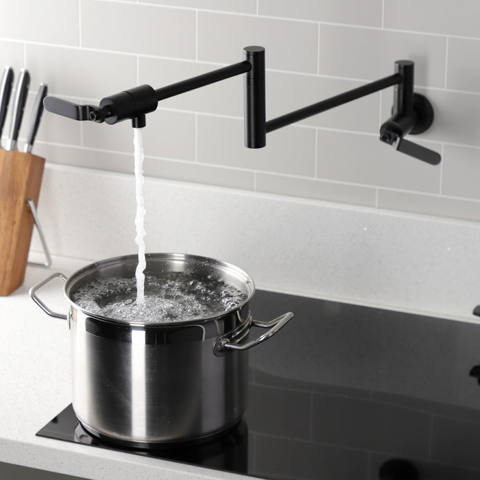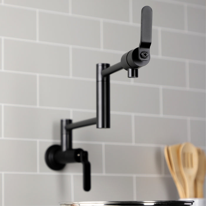 Kingston Sona KS4100KL - Whitaker Two-Handle 1-Hole Wall Mount Pot Filler Faucet, Matte Black