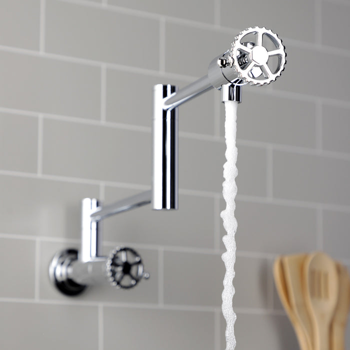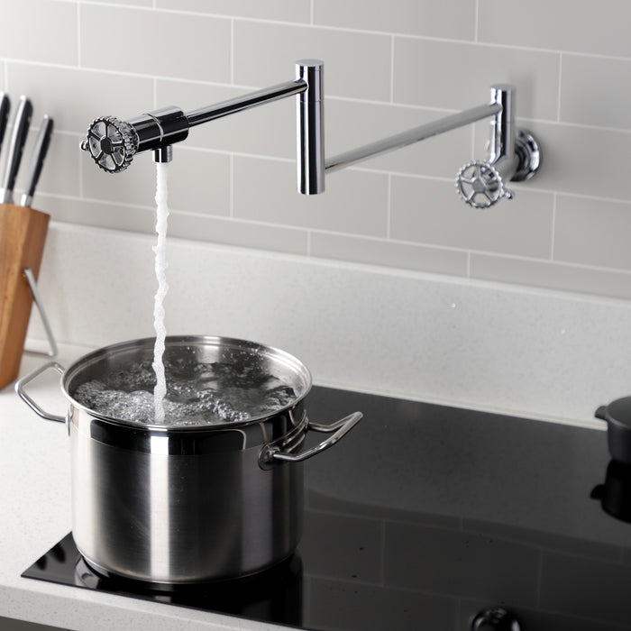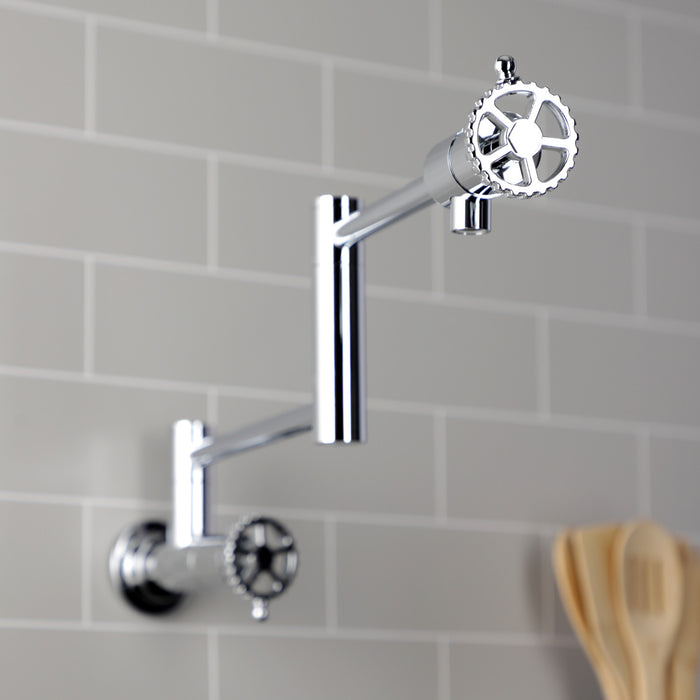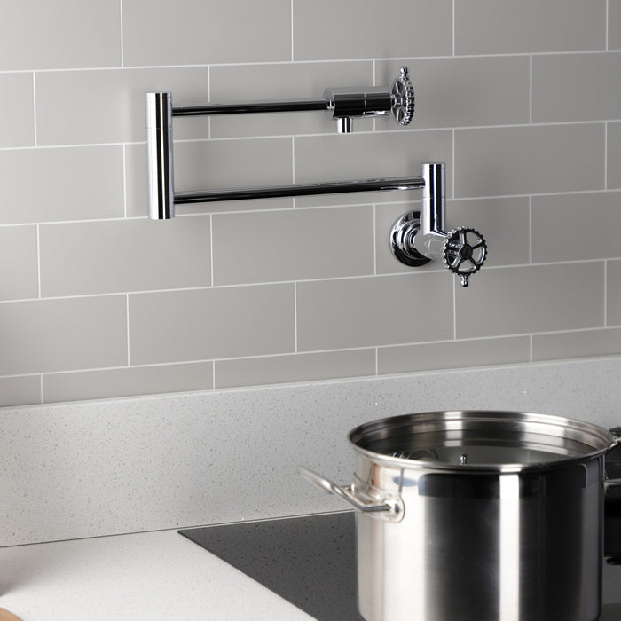 Kingston Sona KS4101CG - Fuller Two-Handle 1-Hole Wall Mount Pot Filler Faucet, Polished Chrome