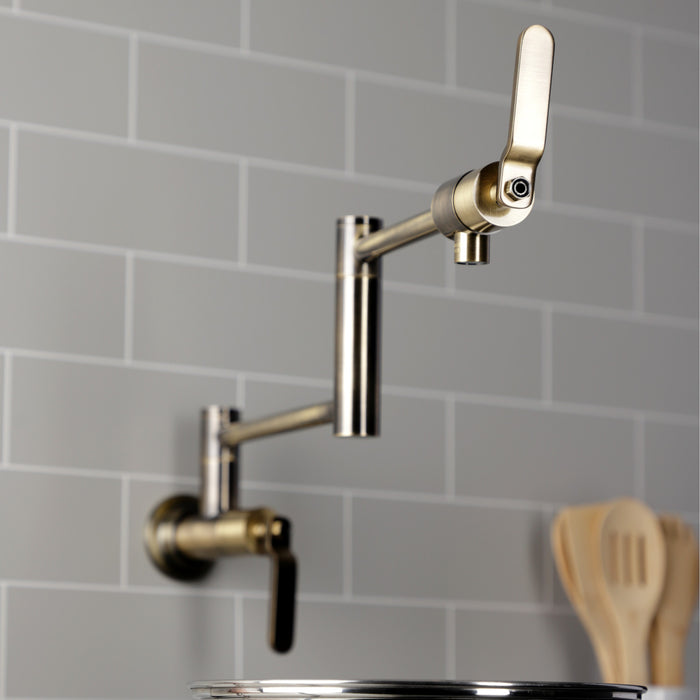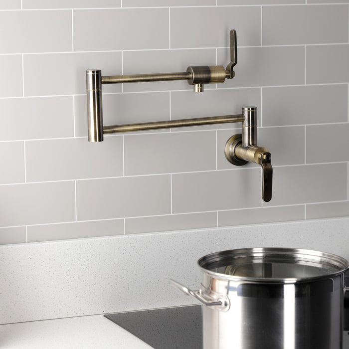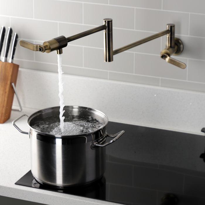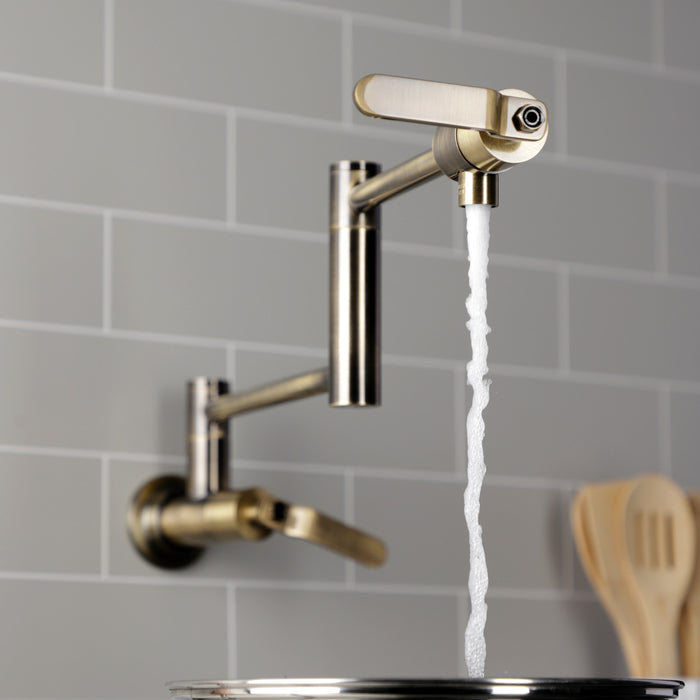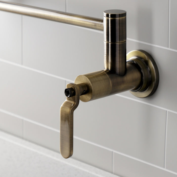 Kingston Sona KS4103KL - Whitaker Two-Handle 1-Hole Wall Mount Pot Filler Faucet, Antique Brass