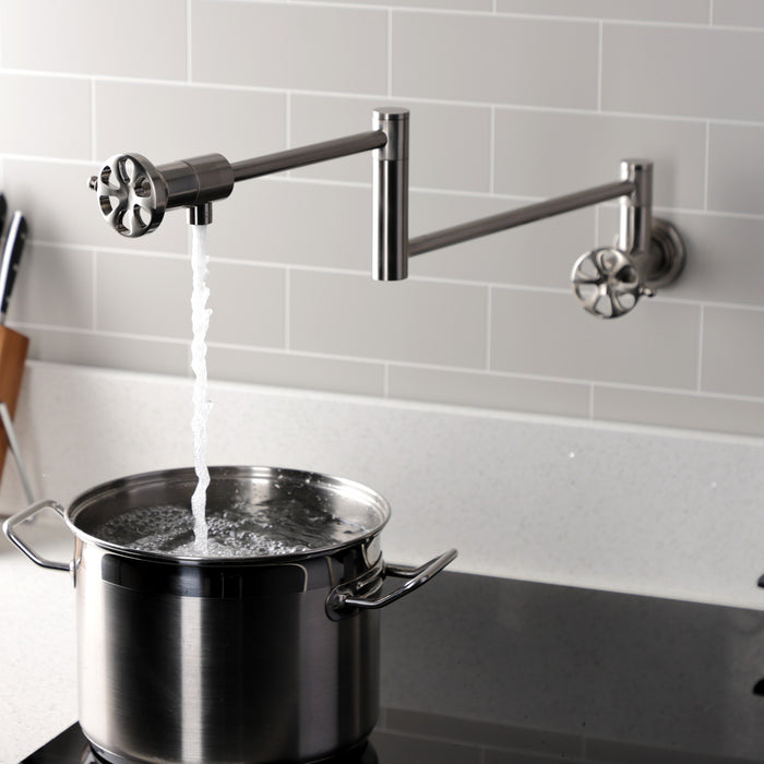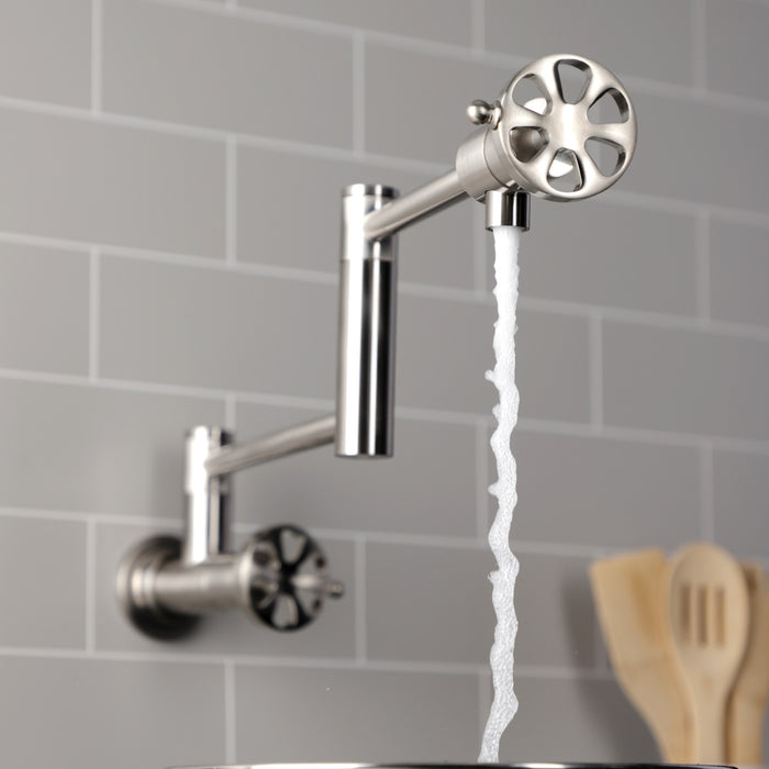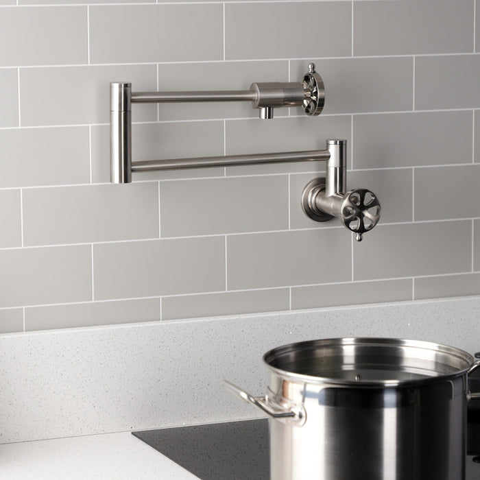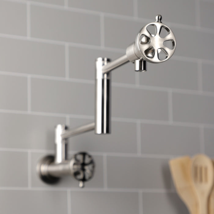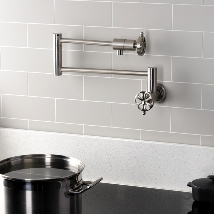 Kingston Sona KS4108RX - Belknap Two-Handle 1-Hole Wall Mount Pot Filler Faucet, Brushed Nickel