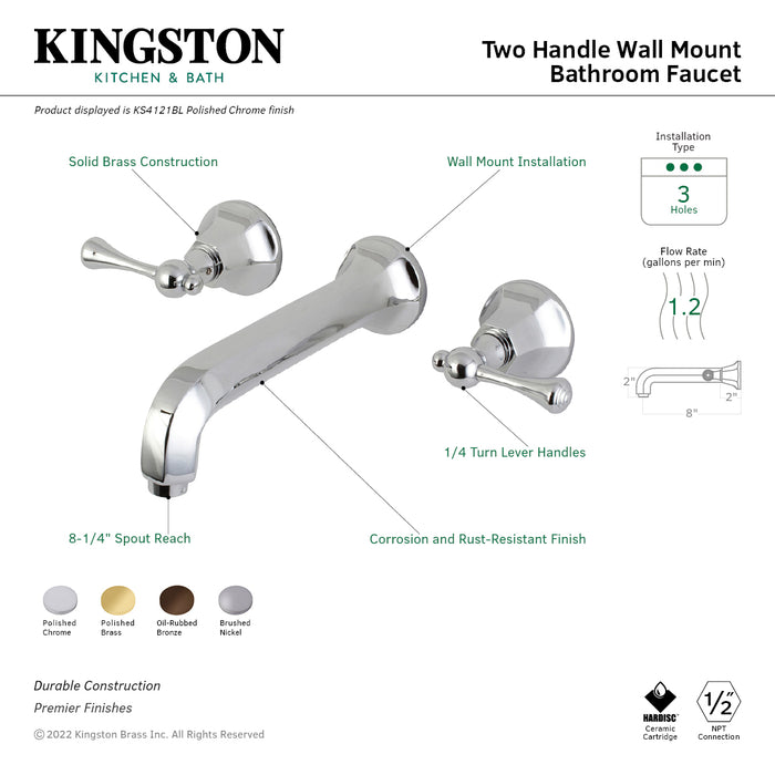Metropolitan KS4122BL Double-Handle 3-Hole Wall Mount Bathroom Faucet, Polished Brass