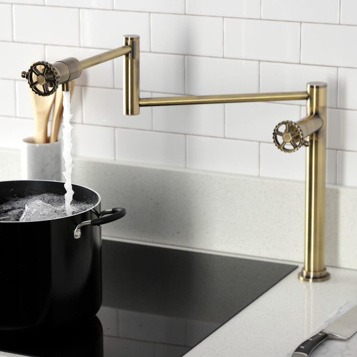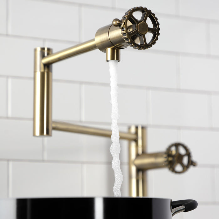 Kingston Sona KS4703CG - Fuller Two-Handle 1-Hole Deck Mount Pot Filler Faucet, Antique Brass