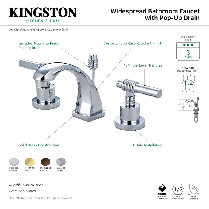 Kingston Tulare KS4942ML - Claremont Two-Handle 3-Hole Deck Mount Widespread Bathroom Faucet with Brass Pop-Up, Polished Brass