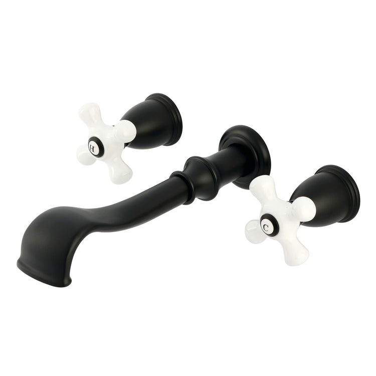 This wall mount roman tub faucet by Kingston Brass not only provides superior performance by quickly filling your bathtub, but also, because of its elegant waterfall spout and traditional porcelain cross handles, it will become the centerpiece of your bathroom. Crafted from solid brass and equipped with a ceramic cartridge, this faucet ensures trouble-free performance for years. With six premium finishes available, you can effortlessly match it to your bathroom's color scheme. Complete your bathroom project with the wide range of bathroom accessories offered by Kingston Brass.