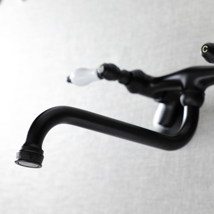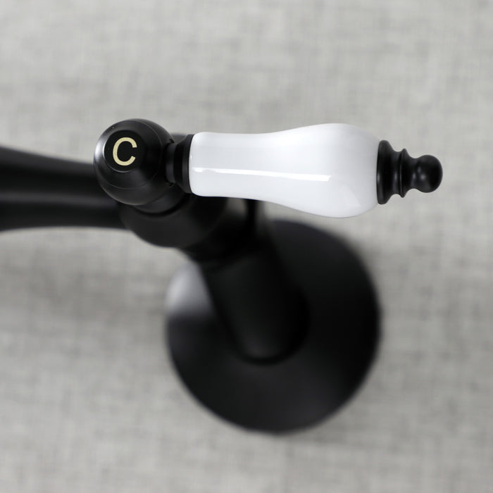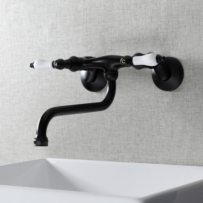 Kingston Heirloom KS516MB - Kingston Double-Handle 2-Hole Wall Mount Bathroom Faucet, Matte Black