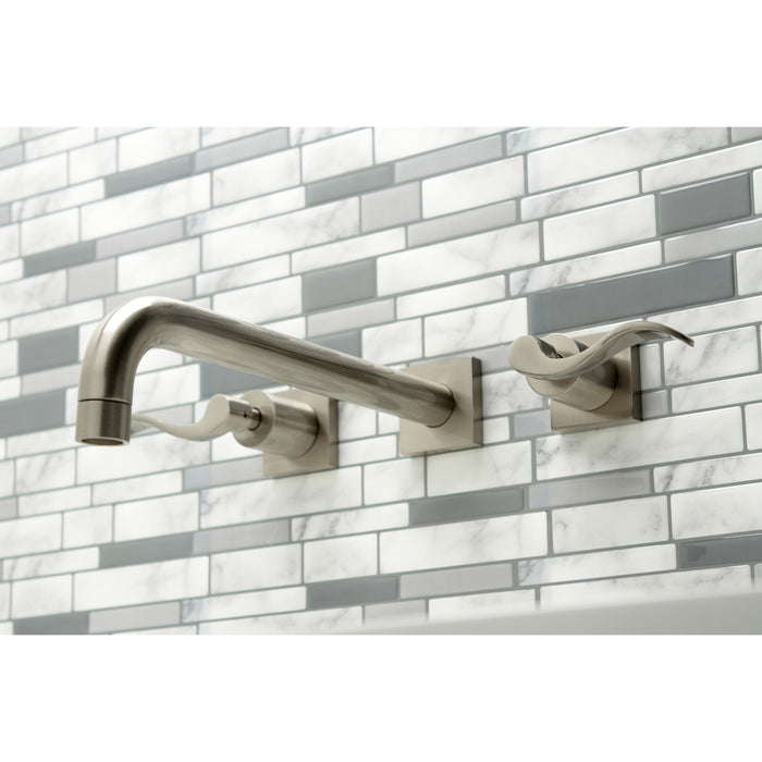 Kingston Tulare KS6058DFL - NuWave Two-Handle 3-Hole Wall Mount Roman Tub Faucet, Brushed Nickel
