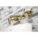 Kingston Tulare KS6122BEX-Essex Double-Handle 3-Hole Wall Mount Bathroom Faucet, Polished Brass