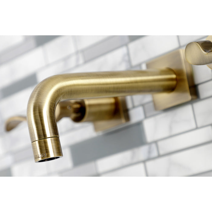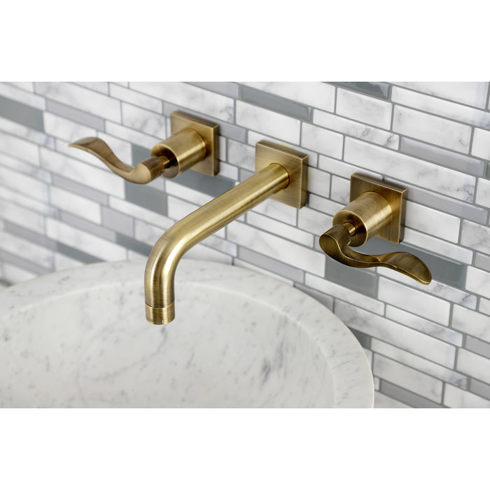Kingston Tulare KS6123DFL - NuWave Double-Handle 3-Hole Wall Mount Bathroom Faucet, Antique Brass