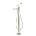 Distinguished for their stately configuration and artsy architecture, freestanding tub faucets are the perfect fixture for any contemporary home to both complement a freestanding tub and act as a beautiful ornamental piece in your bathroom. As the perfect accompaniment to your tub, the Royale Freestanding Roman tub filler with Handshower will surely complete your refined bathroom decorum with the help of its premium, glistening polished chrome finish and hand shower. The brass and zinc alloy construction also makes for a heavy, quality made product.