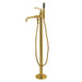 Distinguished for their stately configuration and artsy architecture, freestanding tub faucets are the perfect fixture for any contemporary home to both complement a freestanding tub and act as a beautiful ornamental piece in your bathroom. As the perfect accompaniment to your tub, the English Country Freestanding Roman tub filler with Hand Shower will surely complete your refined bathroom decorum with the help of its premium, glistening brushed brass finish and hand shower. The solid brass construction also makes for a heavy, quality made product.