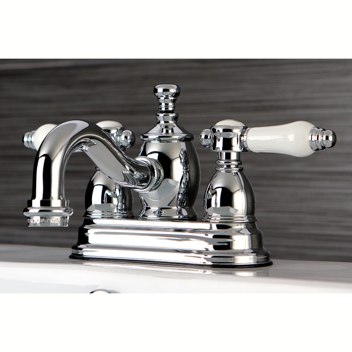 The graceful elegance of timeless design is beautifully merged between British flair and Victorian delicacy within this faucet's white porcelain levers. Centerset bathroom faucets are ideal for smaller bathrooms and feature an easy 3-hole installation. The Bel-Air 4-inch centerset bathroom faucet with brass pop-up and its featured sturdy brass construction and premium polished chrome finish are guaranteed to glamorize your home's traditional ensemble for years to come. Varnish your bathroom with this state-of-the-art fixture. A matching finish drain is also included.