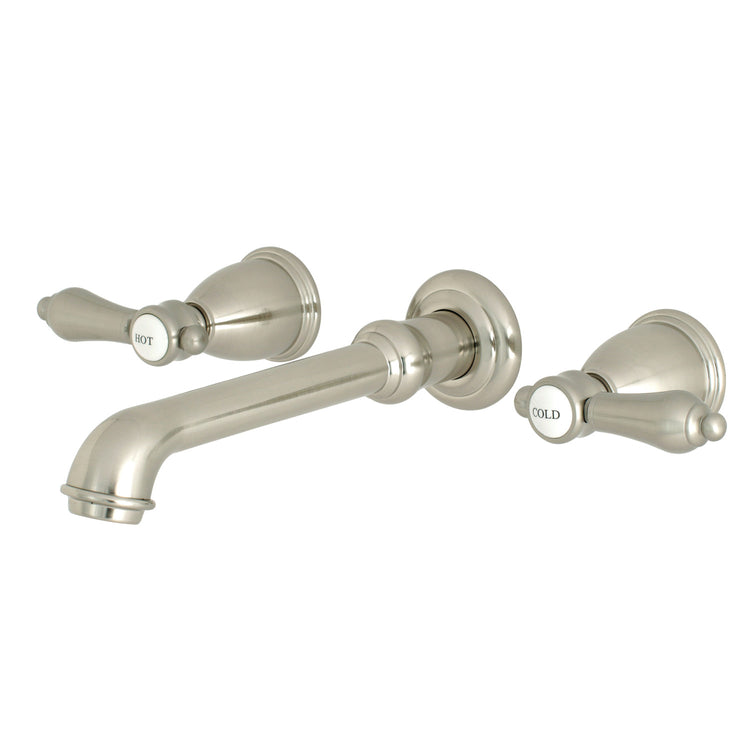 Kingston Tulare KS7128BAL - Heirloom Double-Handle 3-Hole Wall Mount Bathroom Faucet, Brushed Nickel