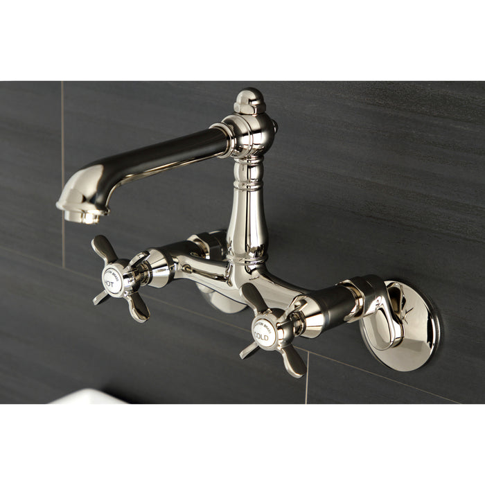 Kingston Tulare KS7226BEX - Essex Two-Handle 2-Hole Wall Mount Bridge Kitchen Faucet, Polished Nickel