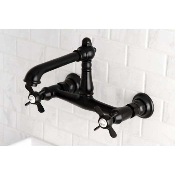 Kingston Heirloom KS7240BEX - Essex Double-Handle 2-Hole Wall Mount Bathroom Faucet, Matte Black