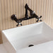 Embody the extravagance of 18th century Europe by adorning your house with the traditional elegance offered by this faucet. The English Country two-handle wall mount bathroom faucet and its featured sturdy brass construction and premium oil rubbed bronze finish are guaranteed to glamorize your home's traditional ensemble for years to come. Attached to the wall behind your sink, the horizontal pop adds a stunning element to your bathroom design. Clean-up is also made a breeze as counter space is cleared up.