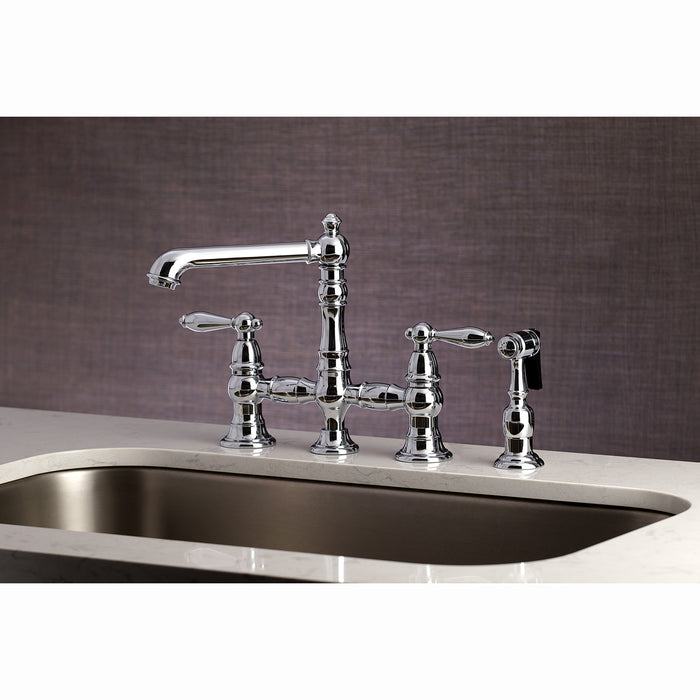 Kingston Tulare KS7271ALBS - English Country Two-Handle 4-Hole Deck Mount Bridge Kitchen Faucet with Brass Sprayer, Polished Chrome