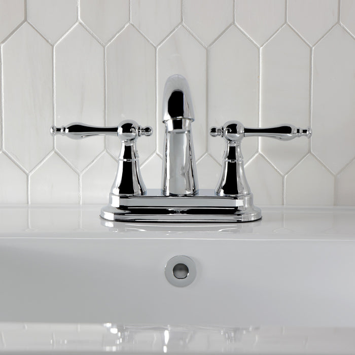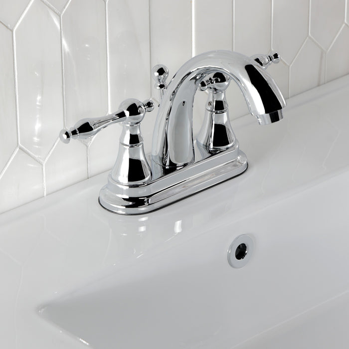 Kingston Heirloom KS7611NL - Normandy Double-Handle 3-Hole Deck Mount 4-Inch Centerset Bathroom Faucet with Brass Pop-Up, Polished Chrome