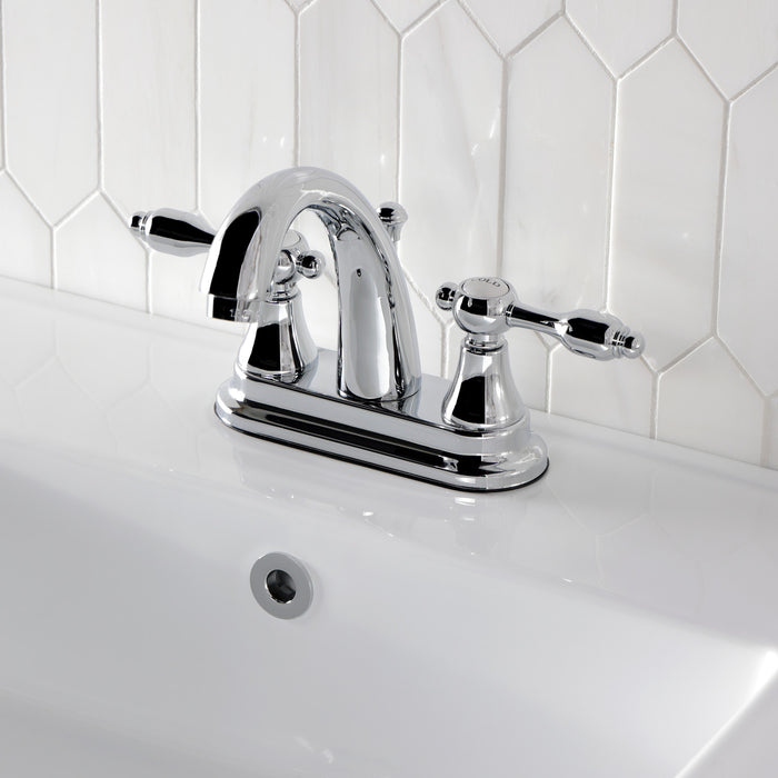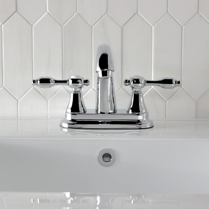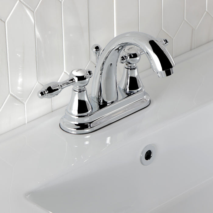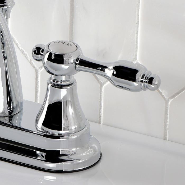 Kingston Heirloom KS7611TAL - Tudor Double-Handle 3-Hole Deck Mount 4-Inch Centerset Bathroom Faucet with Brass Pop-Up, Polished Chrome